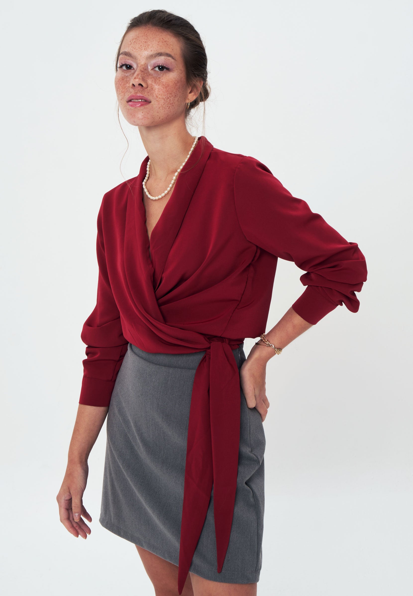 CREPE - Wrap Shirt Blouse - Burgundy