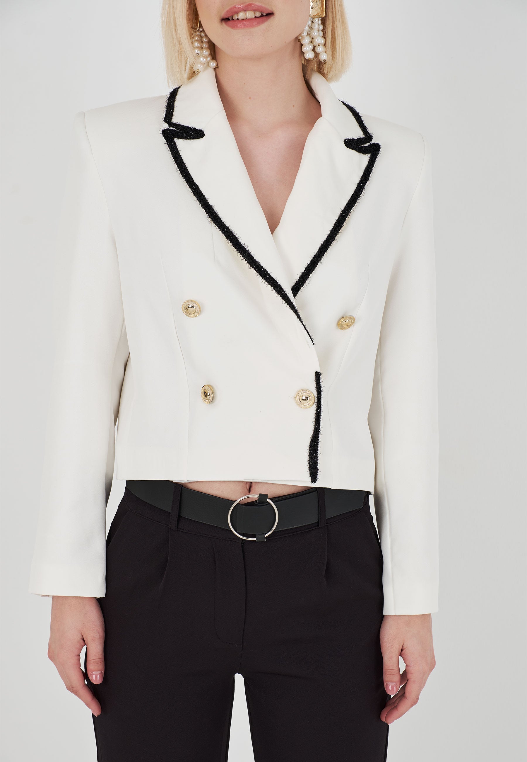 Herita Glitter Striped Double Breasted Collar 4-Button Jacket Beige