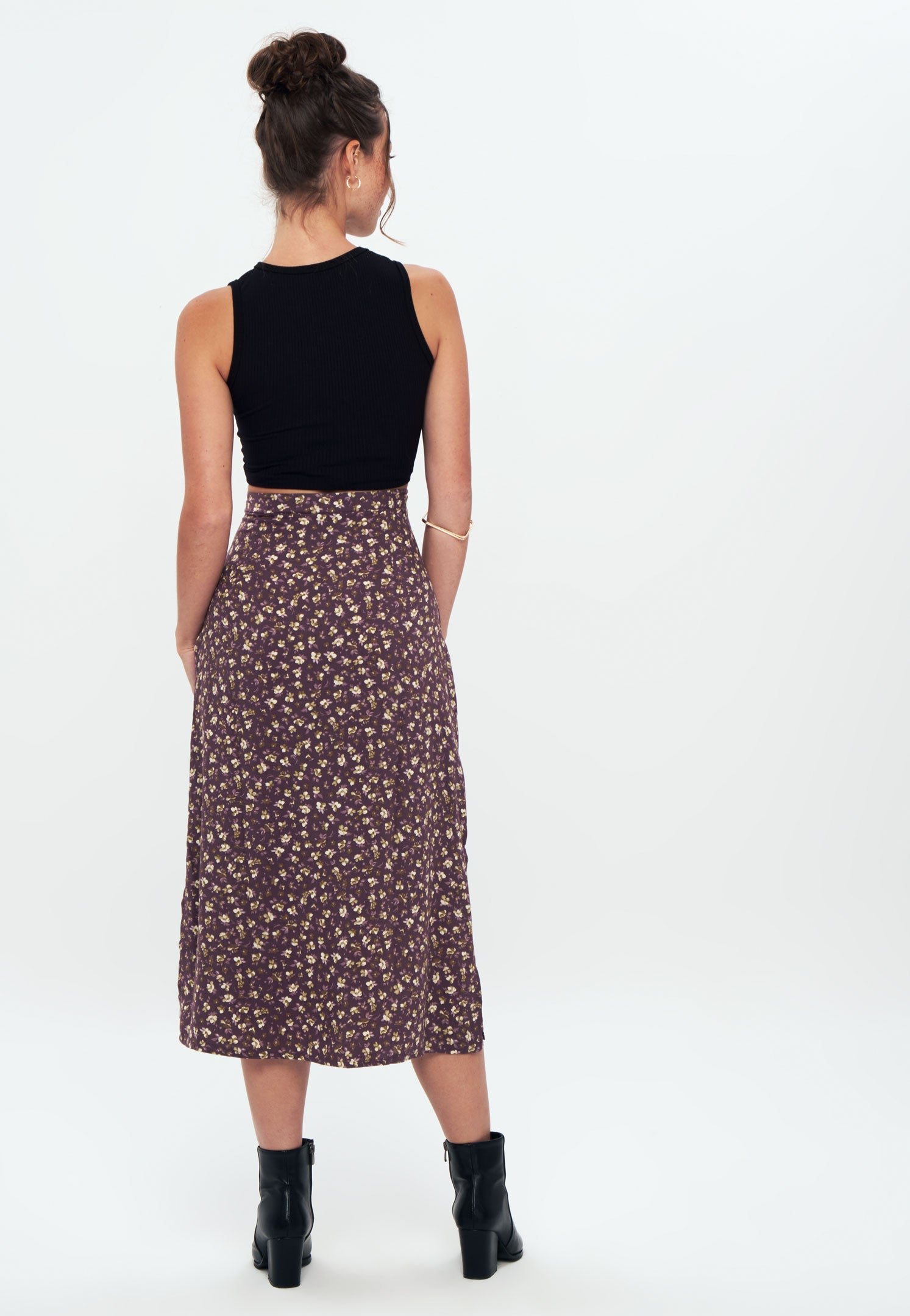 Herita Printed Long Slit Skirt Brown