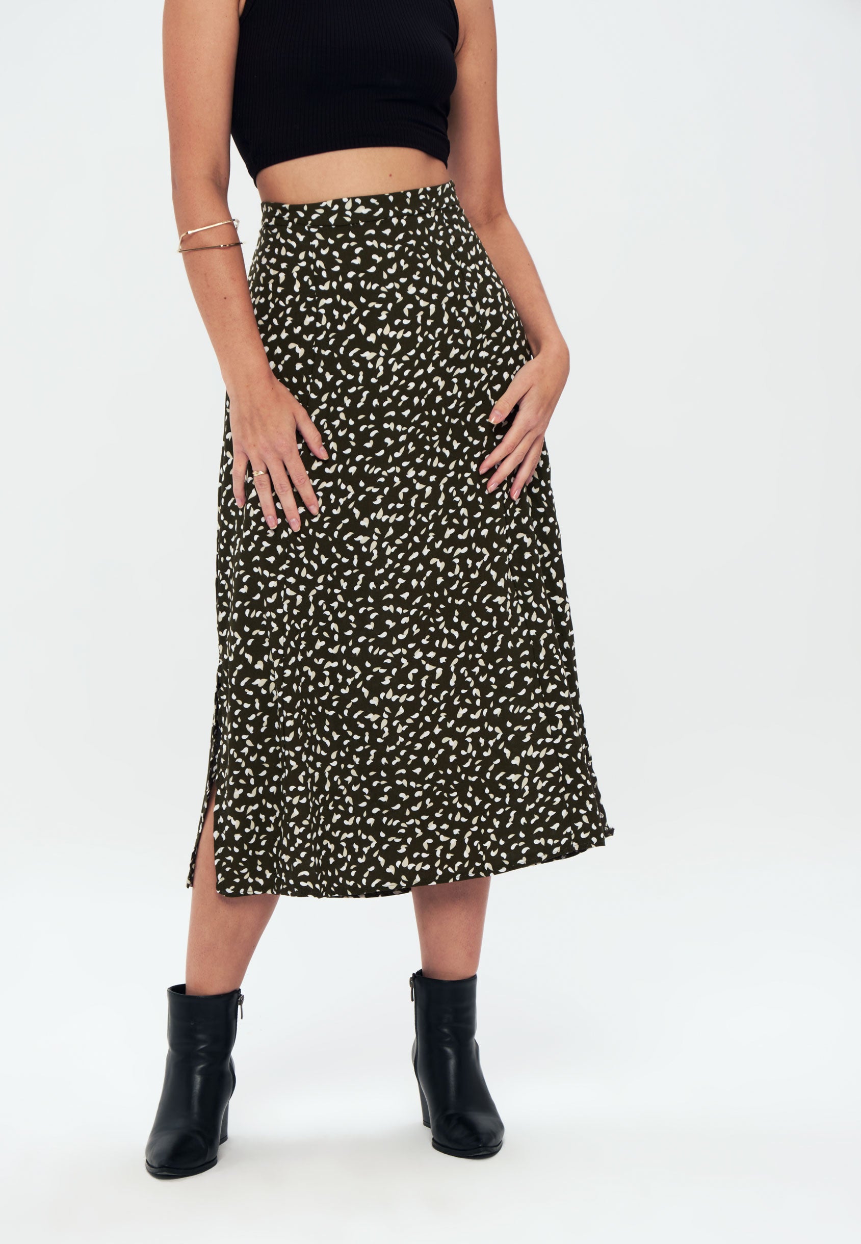Printed Long Slit Skirt in Green - a symbol of freshness, versatility, and natural elegance. ---------------------------------------------- Design: Embrace the enchanting allure of Green, featuring a captivating hue that signifies nature's beauty and tranquility. The long slit design adds a touch of sophistication and allure, allowing you to make a graceful and stylish impression on any occasion. Its flowing and flattering silhouette drapes elegantly, providing both comfort and charm, making it suitable for various events. ---------------------------------------------- Quality: Crafted with meticulous attention to detail, this skirt is made from high-quality fabric that feels soft against your skin, ensuring a comfortable and pleasant wear. The Green color is expertly printed to retain its vibrancy and charm, maintaining its allure even after multiple washes and wears. Designed for longevity, the skirt's excellent construction ensures it remains a timeless piece in your wardrobe, a go-to choice for years to come. ----------------------------------------------- Use: Elevate your daytime look by pairing this Printed Long Slit Skirt with a casual top and sandals, radiating effortless style during leisure activities or outings. Transition seamlessly into evening elegance by combining it with a chic blouse and heels, perfect for dinner parties, events, or special occasions. The Green Printed Long Slit Skirt is a versatile and graceful addition to your wardrobe, allowing you to exude natural beauty and confidence with every step you take.